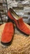 Stylish orange leather suede loafers with brown accents. Comfortable slip-on design by Naturalizer. Comfort footbed with wrap-up rubber sole. Excellent condition!