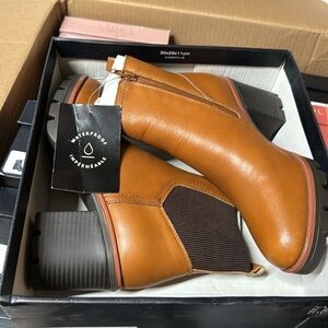 From our Weather Ready collection // A waterproof Chelsea boot-inspired design that is a staple for seasons to come. Get there beautifully. Waterproof ankle bootie with lug sole. Best for: Rain, moderate snow, everyday style and ease. Waterproof leather upper with a closed almond toe. Side zip closure and back pull tab. Side elastic goring panel for extra flexibility. Contour+ Comfort technology for a premium fit and all-day comfort experience. Breathable & insulated fabric lining for added warmth and comfort. Thermal sock liner for advanced heat retention. Rubber traction outsole for slip resistance. Consciously packaged: 100% of our shoe boxes are made of 80% recycled paper + soy-based ink. Designed using sustainable materials. WHY YOU'LL LOVE IT: Ingenious elegant utility. From our Weather Ready collection // Waterproof series. Utility-inspired styles crafted with top-quality materials and luxe linings to ensure you stay dry, warm, cozy and look exceptional all day, every day.