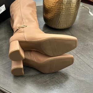 Comfort level = 100. What's next? Add this tall boot with an accented ankle to your cart. Get there beautifully. Knee-high boot with metallic ornamentation. Manmade upper with a closed square toe. Side zip closure. Metallic buckle detail. Contour+ Comfort technology for a premium fit and all-day comfort experience. Non-slip outsole. 2.5" block heel.