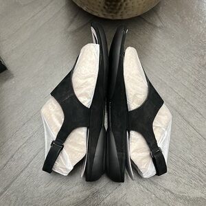 NATURALIZER Womens Black Lightweight Genn-detect Wedge Thong Sandals (Wide)