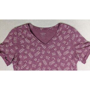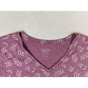 NATURALS BY D&CO - WOMEN'S PURPLE PRINT V-NECK T-SHIRT TOP - SIZE XS