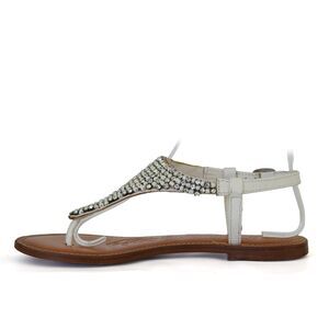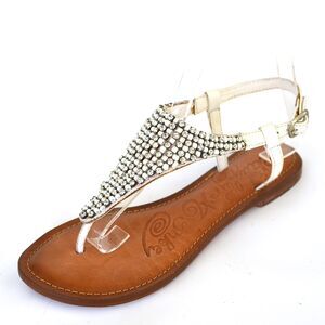 NAUGHTY MONKEY Leather Slingback Sandals Sz 6.5 White Beaded Toe Post Flat Shoe