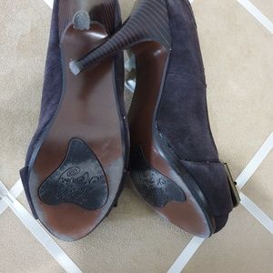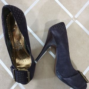 Chocolate Suede 4.5 inch heel, large grommet buckle