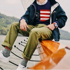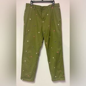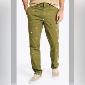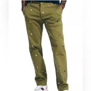 NAUTICA 1983 Collection Embroidered Flags Men’s Pants Cape Olive Size 34W 32L
