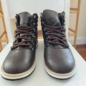 NAUTICA Alize Youth 3 Brown Hiker Ankle Boot Leather Lace-Up Lug Sole Chukka NWT