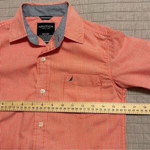 NAUTICA BOYS DRESS COLLARED SHIRT RED FRONT POCKET SMALL (8) | EUC | measurements in pictures