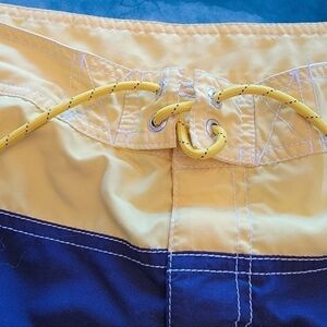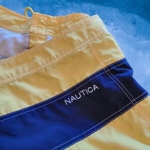 NAUTICA Board Shorts Mens 38 Blue Spellout Swim Trunks Mesh lined T51