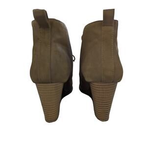 Super pretty vegan suede leather, microfiber stacked look heel wedges, from Nautica! In camel tan/ beige, they're slip-on, LACE-UP front heels with outdoor inspiration! Stitched sole ankle boots, booties, 3.25" heels, a 3.75" rise, with a top opening of 9"-11" depending on lacing! Size 8.5, Excellent Condition,with one Condition Note: At the bottom of both heels, there is a "cut" area- a wear flaw- thus the super low price! Plz see photos! Otherwise, they are: ***ALWAYS ABSOLUTELY GUARANTEED CONDITION OF EUC MINTY-EXCELLENT TO LIKE-NEW, by @nocd!***