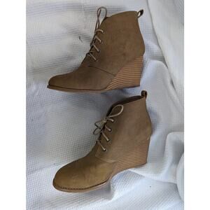 NAUTICA! CAMEL TAN VEGAN SUEDE WEDGE HEEL LACE-UP BOOTS, BOOTIES! SZ 8.5