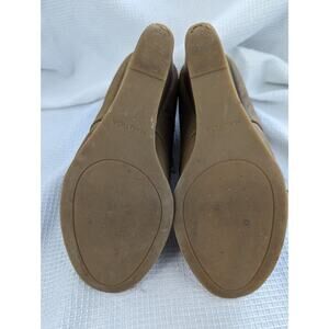 Super pretty vegan suede leather, microfiber stacked look heel wedges, from Nautica! In camel tan/ beige, they're slip-on, LACE-UP front heels with outdoor inspiration! Stitched sole ankle boots, booties, 3.25" heels, a 3.75" rise, with a top opening of 9"-11" depending on lacing! Size 8.5, Excellent Condition,with one Condition Note: At the bottom of both heels, there is a "cut" area- a wear flaw- thus the super low price! Plz see photos! Otherwise, they are: ***ALWAYS ABSOLUTELY GUARANTEED CONDITION OF EUC MINTY-EXCELLENT TO LIKE-NEW, by @nocd!***