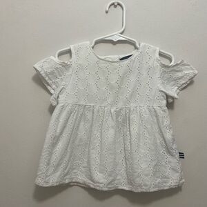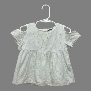 NAUTICA Eyelet Cotton White Cutout Shoulder High Waisted Blouse Girl Sz 2T Flowy