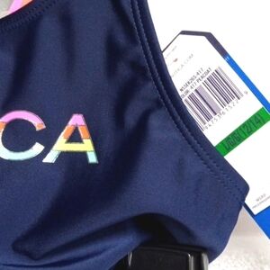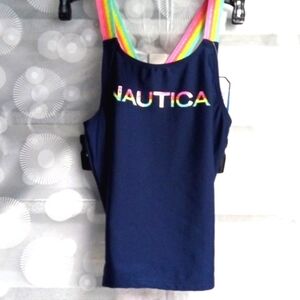 NAUTICA GIRLS NAVY PASTEL CROSS BACK TWO PIECE SWIMSUIT SIZE LARGE 12/14 NWT