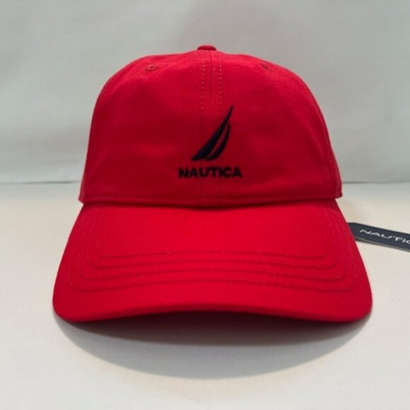 NAUTICA J-Class Adjustable Embroidered Cap- Red/Navy Sailboat Logo