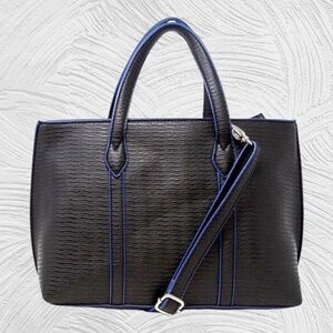 NAUTICA Leeway Tote & Crossbody Bag-Black w/Blue Trim
