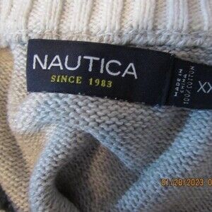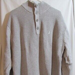 NAUTICA MEN'S SWEATER GRAY SIZE XXL COTTON COLLAR FALL WINTER RIBBED