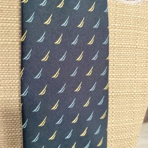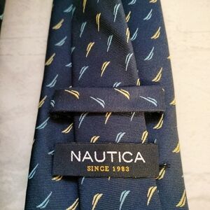 NAUTICA MENS TIE NAVY BLUE WITH BLUE AND GOLD NAUTICA LOGOS 3.5 X 60
