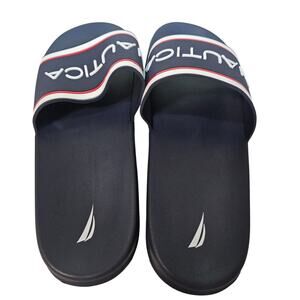 NAUTICA Men sz11 Navy 3D letter logo Slipon Slippers. Beach. Relaxing. Cruise. Vacation. Travel. In excellent condition. Must see All pictures for the details and measurements. Offers Welcome. Ships Fast