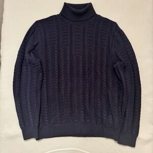 NAUTICA Men's Cable Knit Cotton Turtleneck, Sweater Navy Blue XL - 47X28