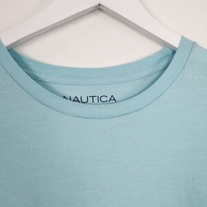 This NAUTICA Men's T-Shirt is a light green crewneck made from 100% cotton fabric, featuring a logo on the front. The shirt comes in size XL and has short sleeves, making it suitable for wear in all seasons - winter, summer, fall, and spring. It is part of the Nautica product line, offering a classic fit and easy care with machine washability. Perfect for casual wear, this T-shirt embodies a timeless and classic style for men.