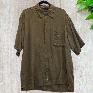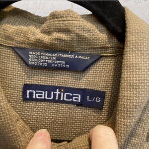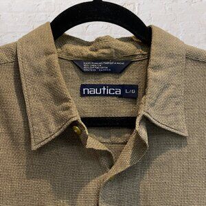 NAUTICA -- Men's Shirt, Linen, Short Sleeved Button Down, Collar, Beige, Pocket