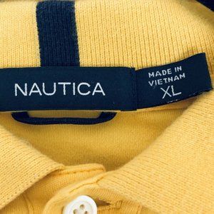 NAUTICA Men's Yellow Cotton Long Sleeve Pullover Polo Shirt- Size XL. Condition is "Pre-owned". Chest- 26 inches Length-28 inches