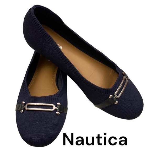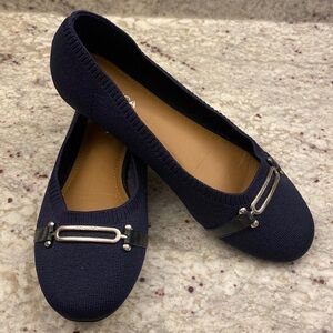 NAUTICA Navy Blue Ballerina Slides with Silver Metal Buckle Detail Size 8