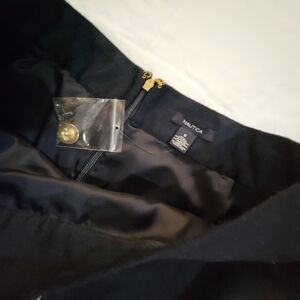 NWOT NAUTICA Classy Navy blue Wool Blend Nautical Skirt Front Gold Buttons Size 6