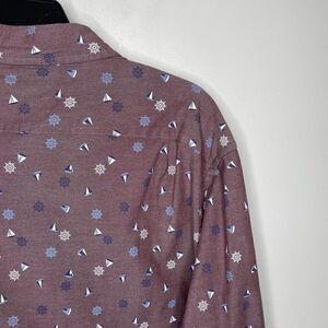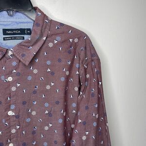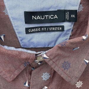 NAUTICA Shirt Mens XXL Red Nautical Print Button Up Classic Fit Stretch Sailboat