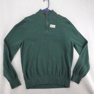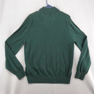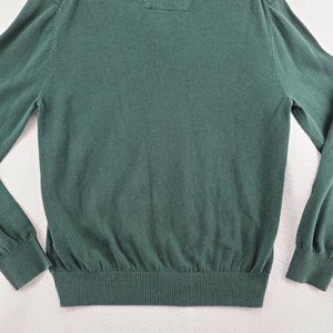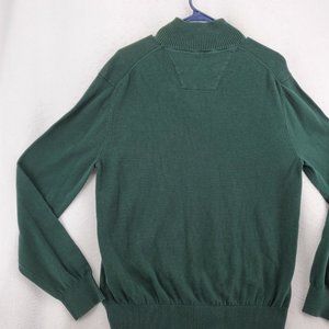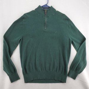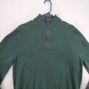 This Nautica men's sweater in size L features a stylish 1/4 zip, a high neck. Its solid green color and comfortable cotton material make it a perfect blend of function and fashion.