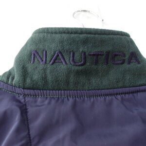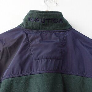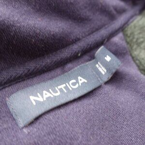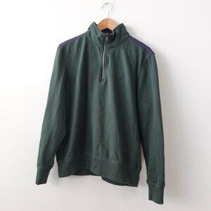 NAUTICA Sweatshirt Men Medium Logo Sweater SPELL OUT Pullover Green Zip Neck