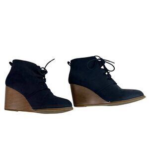 🟣🟣🟣 NAUTICA Womens Size 9.5 Dark Blue Tie Up Wedge Heels