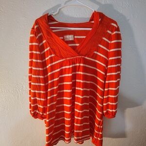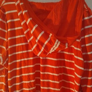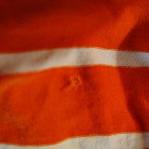 Old Navy orange and white hoodie size XL, casual, oversized, v-neck, pullover, sporty, relaxed, soft, everyday, bold, preppy, classic, casual, crisp, timeless, minimal, nautical, clean, RESORT READY TROPICAL RELAXED EFFORTLESS BEACHY EASY TO PACK, PACKABLE, TRAVEL EYE CATCHING PLAYFUL HOODIE MADE BY OLD NAVY Clothing Company. 23" from pit to pit, 15 inch sleeves. There is a flaw a small possible soon to be hole that is not yet formed or open but you can tell that it someday will be a hole. There is a picture attached to the photos that are uploaded.