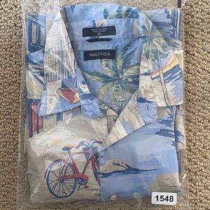 NAUTICAL Coastal Beachy Tropical Collared Short Sleeve Shirt Men XL