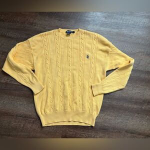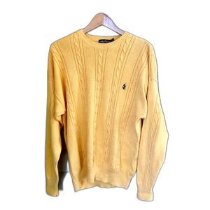 NAUTICAL Yellow Cotton Cable Knit Crew Neck Sweater Sz XL vintage preppy 90s