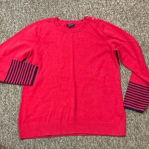NAUTICA Red Sweater Blouse with Striped Sleeves Size XL