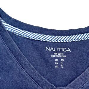 NAUTICA “Where The City Meets The Sea” Navy Blue V-Neck T-Shirt Size XS