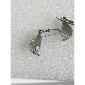 NAVAJO TURQUOISE CORAL DANGLE DROP BEAR PAW 925 STERLING SILVER VINTAGE EARRINGS