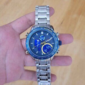 Features: Dual Display, LED Display, Analog, Auto Date, Complete Calendar, Water-Resistant, Shock Resistant
