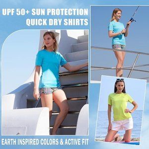 • UPF 50+ Sun Protection, Quick Dry, Breathable, Moisture-Wicking, Crew Neck, Short Sleeve