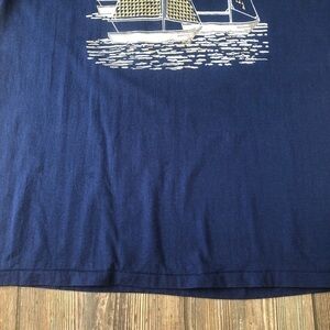 NAVY Blue Gold Glitter Sailboat Short Sleeve Tee Large Shirt Vintage