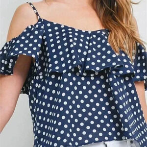 NAVY POLKA-DOT COLD SHOULDER BLOUSE