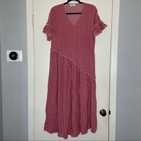 Used but good condition NAVY Paris pinkish red pattern maxi cottage dress. Light weight and comfortable.