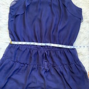 Halter dress with ruffle detail and tie at waist.