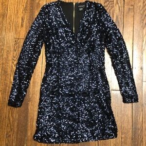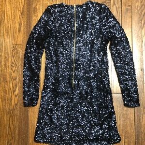 Venus NAVY sequined midi matte jersey dress. 95% polyester / 5% spandex Brass rear zipper. Excellent preowned condition.