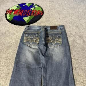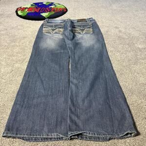 NAVY Y2K XTREME COUTURE ACID WASHED BAGGY JEANS WITH CRAZY BACK POCKETS😮💨