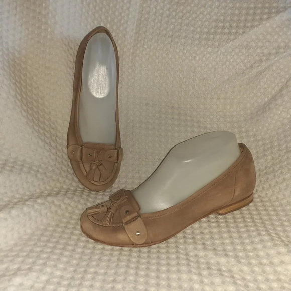 NAVYBOOT-Italy-Taupe Suede Tasseled Loafers-Sz 38-Excellent