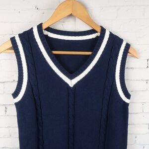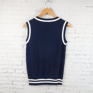 NAVY WITH WHITE STRIPE PREPPY SLEEVELESS COTTON SWEATER VEST SIZE SMALL