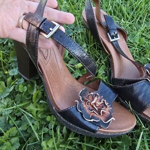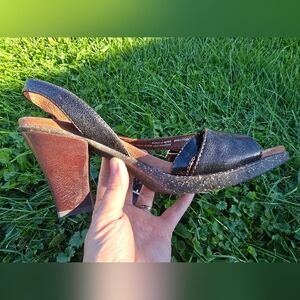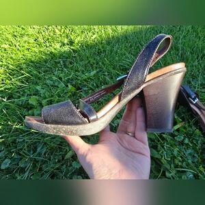 NAYA AIRENA BLACK LEATHER BAMBOO 3.5"HEEL SANDALS WOMEN SIZE US 9M