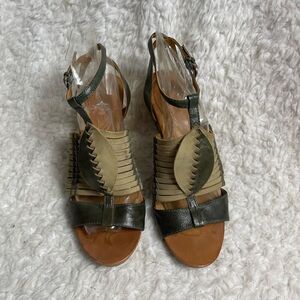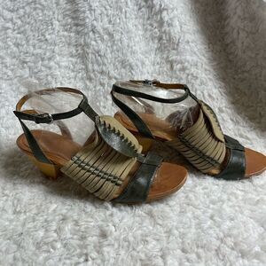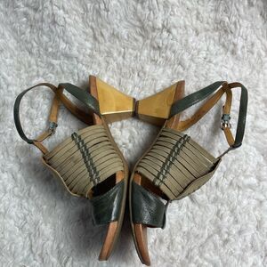 NAYA Tova woven leather moss green straps sandals with wooden chunky heel. SZ10M pre owned in good used condition signs of wear on the outer soles.see all pictures any questions please message.L2