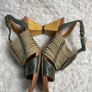 NAYA Tova woven leather moss green straps sandals with wooden chunky heel. SZ10M